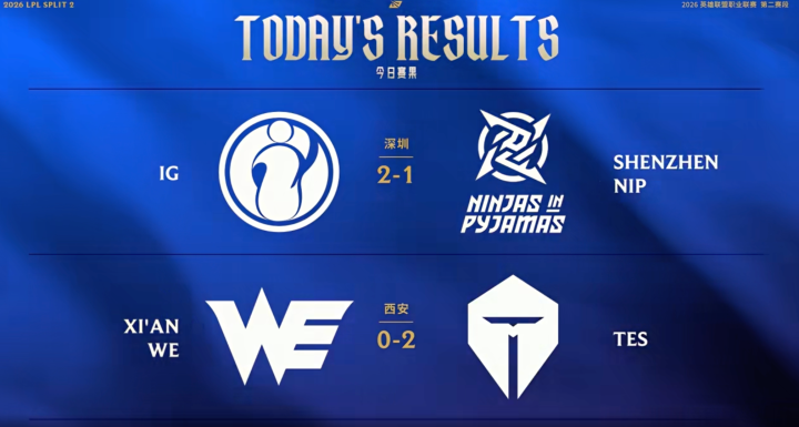LPL赛区:青春IG掀翻NIP,TES横扫WE