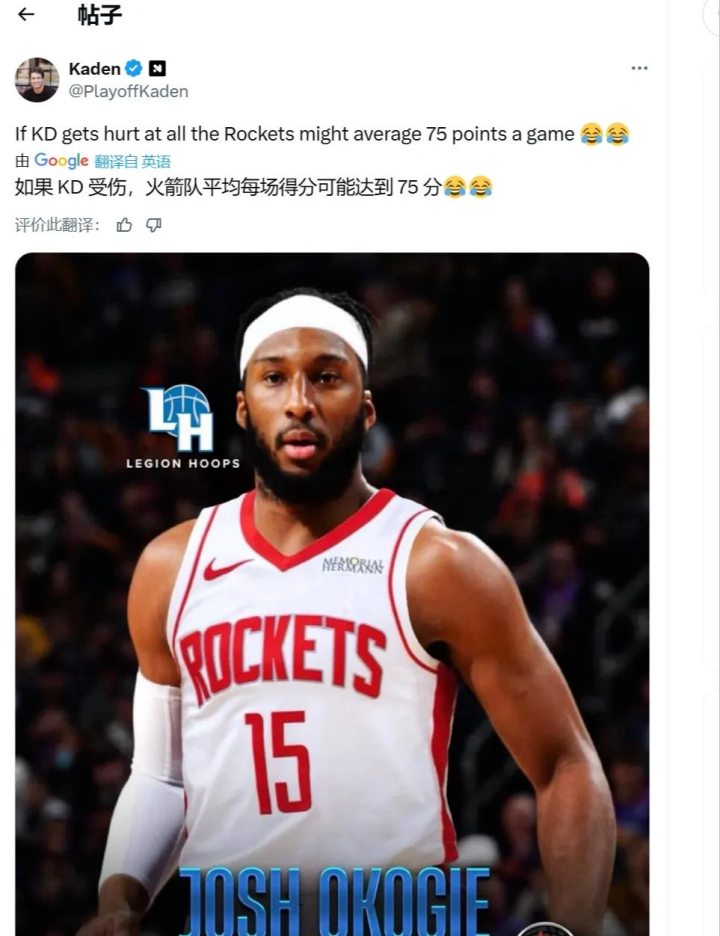 如果说之前几年我们还在讨论火箭目前队内的核心是申京、杰伦-格林还是阿门-汤普森的话。那么今年休赛期后已经很明显斯通的操作了,火箭的核心完全不是新加盟的杜兰特+阿门+申京的三巨头而是乌度卡。现在签下来的所有球员都是符合乌度卡理念的,而约什-奥科吉这笔签约就是把这个理论发挥到极致。(乌度卡理念:防守+尺寸+机动性,只要不具备这些轻则DNP,重则送走)