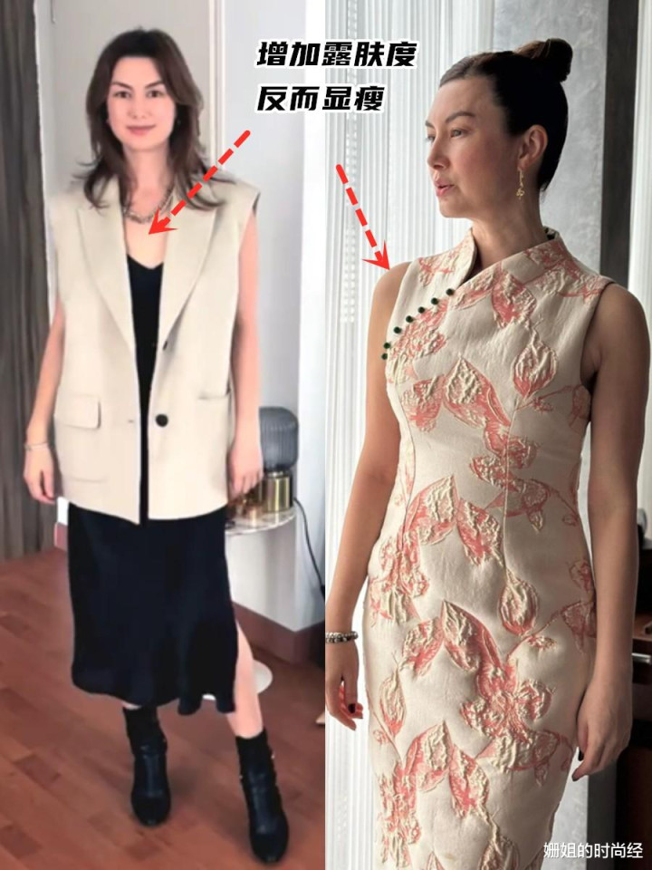 脸部发腮,年轻时流畅锋利的下颌线变得圆润,面部留白增多;身材发福,纤细的腰肢和手臂变得丰腴,穿上贴身裙装时能看到明显的小肚子。这种变化是如此真实,以至于很多人觉得“女神滤镜碎了一地”。
