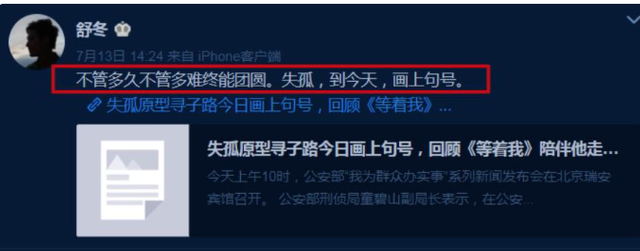 即便是脱离节目,他依旧心系着那些没有找到亲人的嘉宾,2021年寻儿多年的郭刚堂终于到了儿子,消息公布的第一时间,舒冬就送去了祝福。