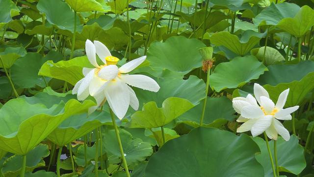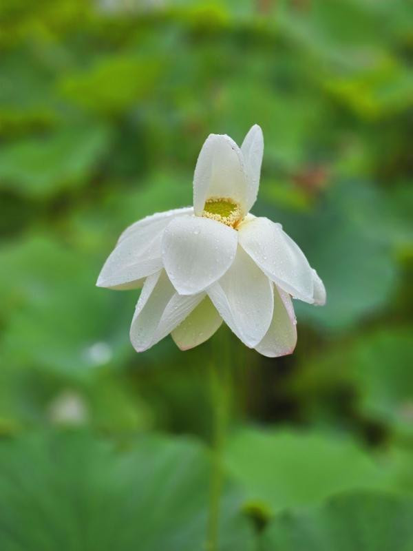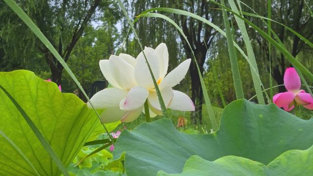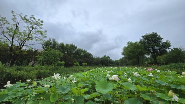 7月25日,雨后的通州镜河,一池荷花美得格外动人。粉色或白色的花瓣被雨水洗得愈发透亮,边缘微微卷曲,晶莹的雨珠更为其增添了几分娇柔。周围荷叶铺满水面,与亭亭玉立的花朵相映,构成一幅清新柔美的夏日水景图。