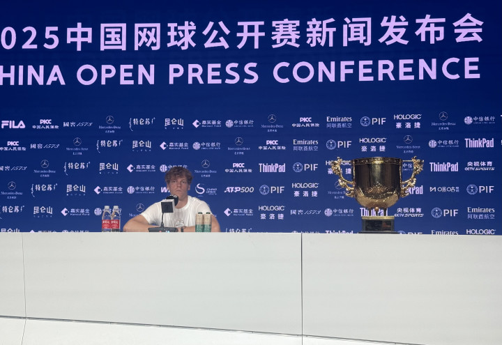 直播吧10月01日讯中网男单决赛,辛纳两个6-2轻取勒纳-钱,再夺中网冠军。赛后辛纳出席了新闻发布会答记者问。