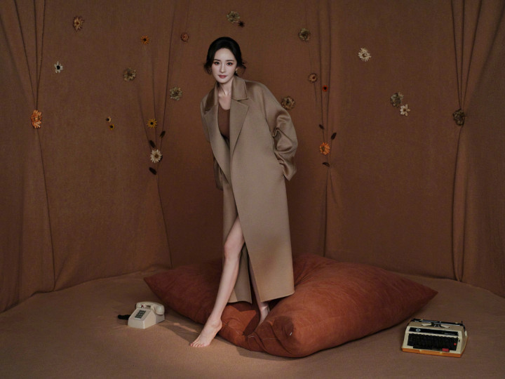> 杨幂风拂过衣角, 漾动了整片风景, 仿佛展开了一卷冬日的画布
