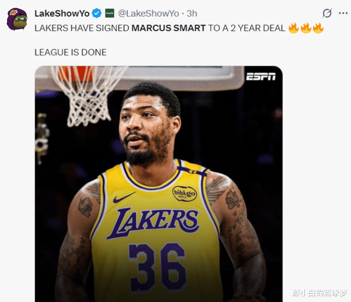 湖媒:湖人已经与斯玛特签下两年合同(火了、火了),联赛要结束了。
