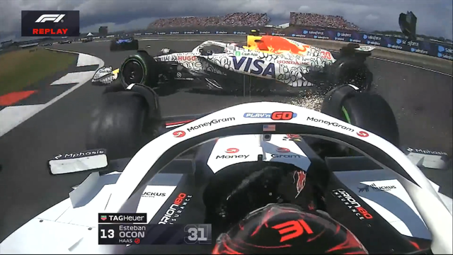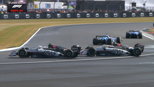 贝尔曼走内线,与队友发生了碰撞,两位哈斯车手同时失控旋转。