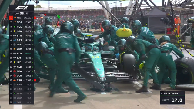 第38圈,阿隆索进站换上干胎,其他人还在观望。
