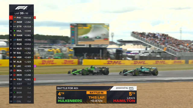 汉密尔顿很快超越斯托尔,他距离霍肯伯格只有1秒。