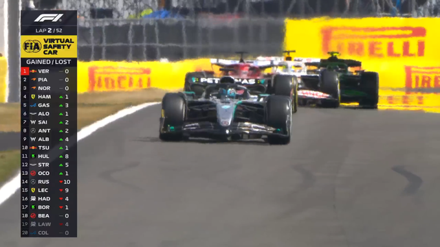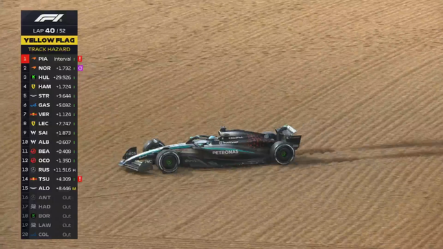 第3圈,安东内利在虚拟安全车期间也进站换上干胎,出站后排在队友身前。但现实是,干胎的表现并不如预期。后来因为拉塞尔速度更快,两位车手交换了位置。