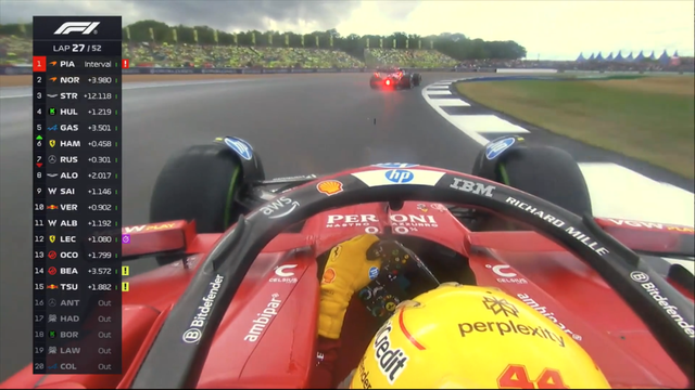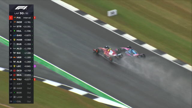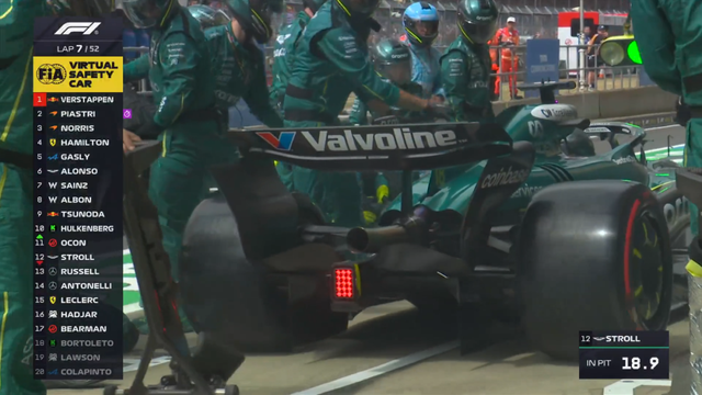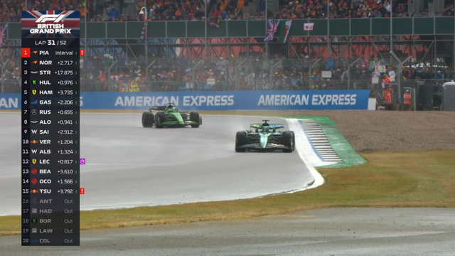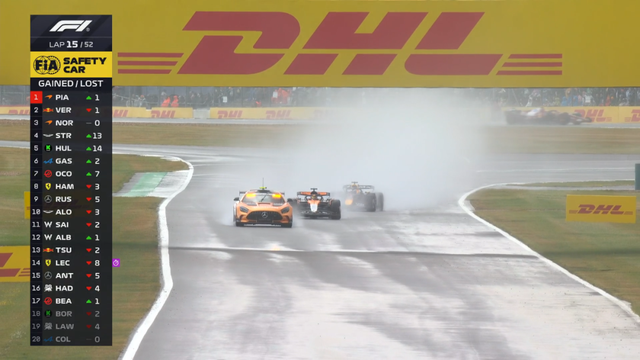 与此同时,维斯塔潘轮胎已经不行,他走大后被诺里斯超过,随后领跑的三位车手一同进站更换新的半雨胎。