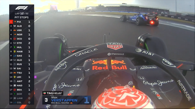 迈凯伦双车进站,后进的诺里斯因为换胎更慢,被维斯塔潘在维修区完成反超。