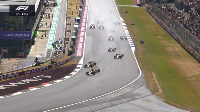 五盏红灯熄灭,维斯塔潘领先进入1号弯,并且之后保持领跑!