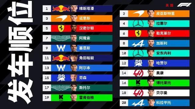 在前一天的排位赛中,维斯塔潘凭借最后一圈的出色发挥绝杀杆位。皮亚斯特里第二,诺里斯第三。