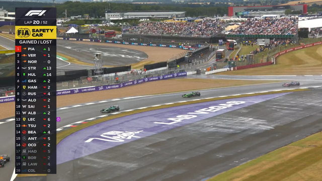 北京时间7月6日晚,F1英国大奖赛正赛在银石赛道落下帷幕。由于下雨,比赛过程一波三折,多次安全车出动。最终主场车手诺里斯首次在银石夺得冠军!皮亚斯特里因为安全车下违规罚时,遗憾取得第二。