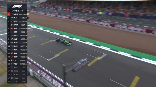 最终比赛结束,诺里斯主场获胜!皮亚斯特里第二。霍肯伯格第三,生涯首次获得领奖台,这也是车队更名为kick索伯后的首个领奖台。