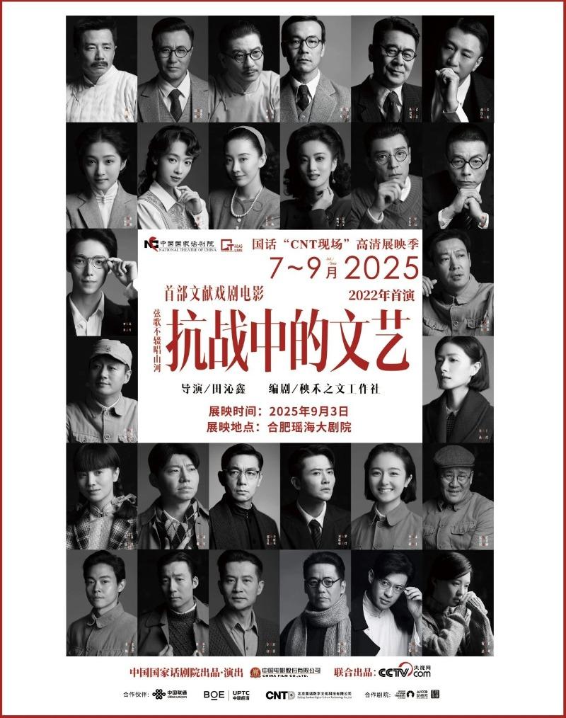 大皖新闻讯 今年是中国人民抗日战争暨世界反法西斯战争胜利80周年,文献戏剧电影《抗战中的文艺》在中国国家话剧院“CNT现场”高清展映季特别呈现。记者了解到,9月3日,该作品将在合肥瑶海大剧院上映。