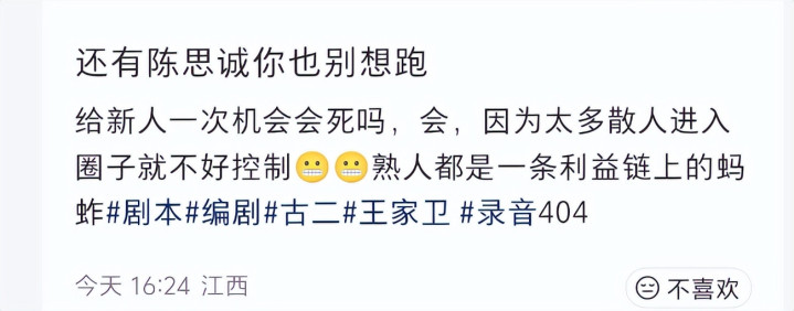 有一位短剧编剧直接点名了陈思诚,指责他就是著名的爱剽窃,曾经通过比赛搜集剧本。