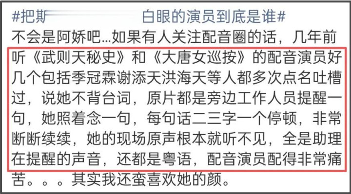 给人感觉她很有底气,根本不怕有人揭穿她的话,那个不背台词的演员确实存在,至于到底是谁,可能她不透露,网友也猜不出。